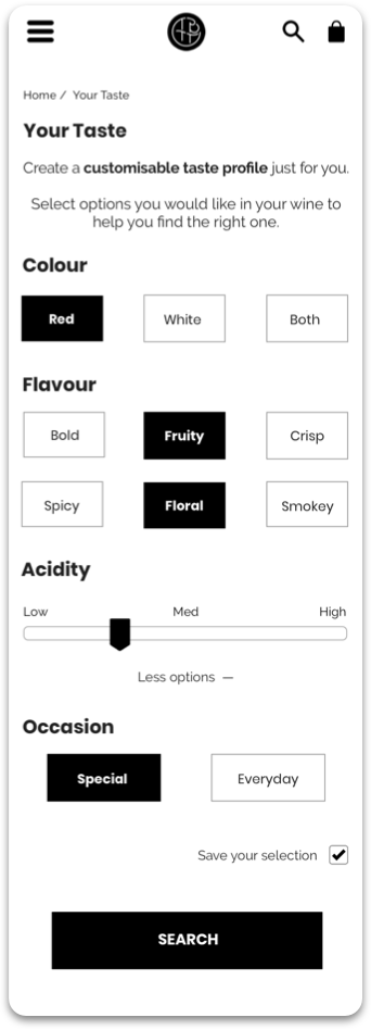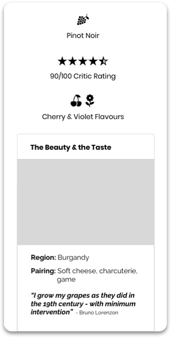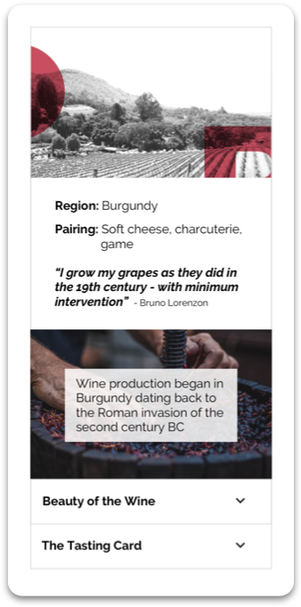 Guiding users through the experience would clarify key differences between wines and support more confident product